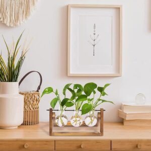 Enhance your home or office decor with this stylish hydroponic plant holder, designed to showcase the beauty of growing plants while adding a modern, natural touch. The high-quality wooden frame provides sturdy support, while the three transparent glass bulb vases allow you to observe root growth, making plant propagation both easy and visually appealing.