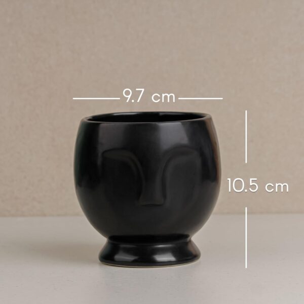 Bring sophistication and charm to your plant display with this Black Ceramic Face Planter. Crafted from premium ceramic, this planter is perfect for housing small indoor plants, succulents, or herbs while seamlessly complementing any décor style. Its unique face design adds a touch of artistic elegance, making it a conversation starter.
