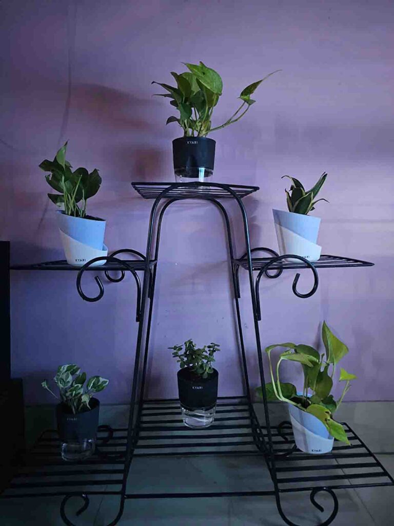 Perfect stand for balcony. Light weight with easy to assemble. can place easily big 6 pots. Overall loved the design and quality. Go for it.
