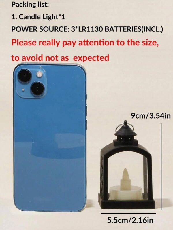 The Mini LED Candle Lantern is an elegant and compact decorative lighting piece that adds warmth and charm to any space. Designed with a classic black frame and intricate lattice patterns, this lantern houses an LED candle that mimics the natural flicker of a real flame. It is powered by three LR1130 batteries (included), making it safe, energy-efficient, and hassle-free. Whether used for weddings, parties, bedside décor, or cozy evenings, this lantern provides a soft, ambient glow without the mess of wax or the risk of fire. Its lightweight and portable design make it easy to place anywhere in your home or event setting.