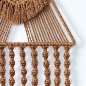 The neutral earthy tone blends effortlessly with different color schemes, adding warmth and texture to your décor. Its lightweight yet sturdy build makes it easy to hang using a simple hook or nail. Whether you’re decorating a bohemian-inspired bedroom, a cozy living room, or an artistic workspace, this macramé piece is sure to make a statement.