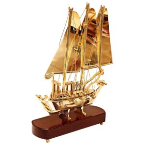 The Golden Sailing Ship Metal Showpiece is a beautifully designed decorative item that brings a touch of nautical elegance to any space. Made from premium-quality metal with a polished gold finish, this ship model showcases intricate craftsmanship, including finely detailed sails, ropes, and anchors. The wooden base provides stability and enhances its aesthetic appeal. This showpiece is ideal for display on office desks, living room shelves, or as a unique gift for maritime enthusiasts, travelers, or those who appreciate luxury decor.