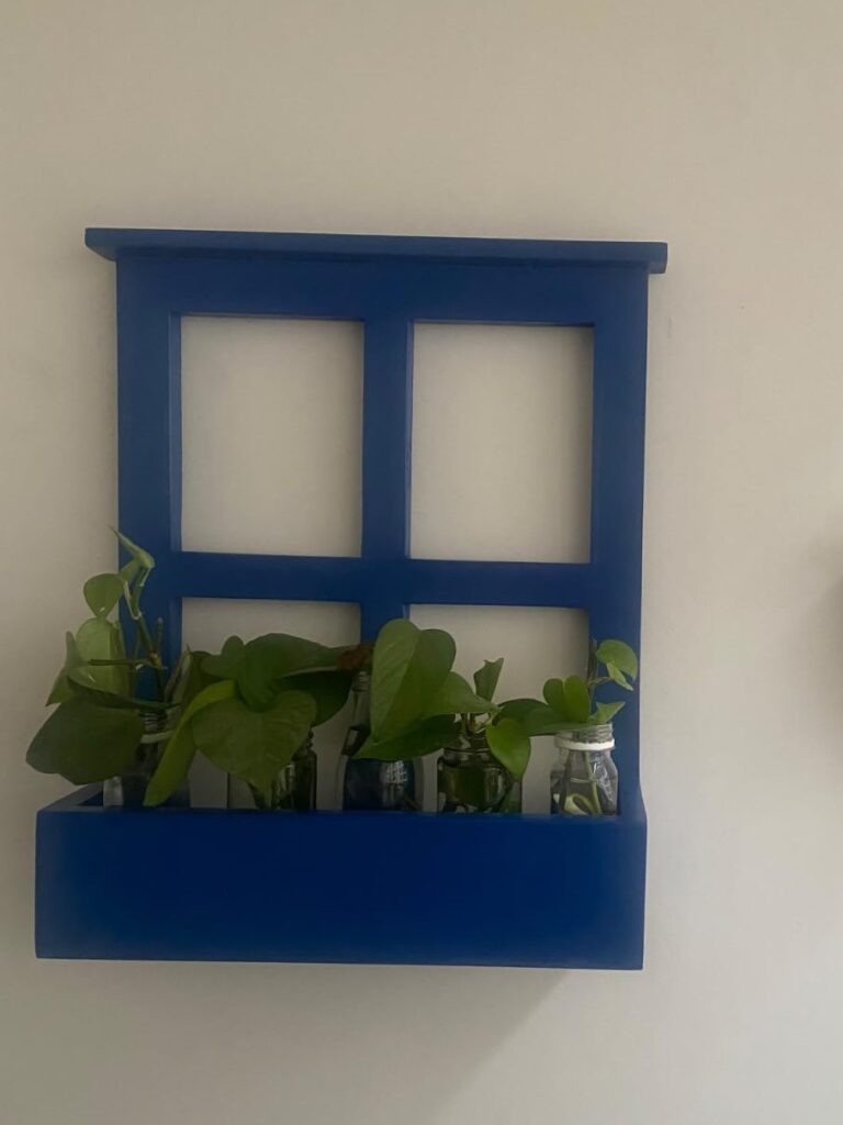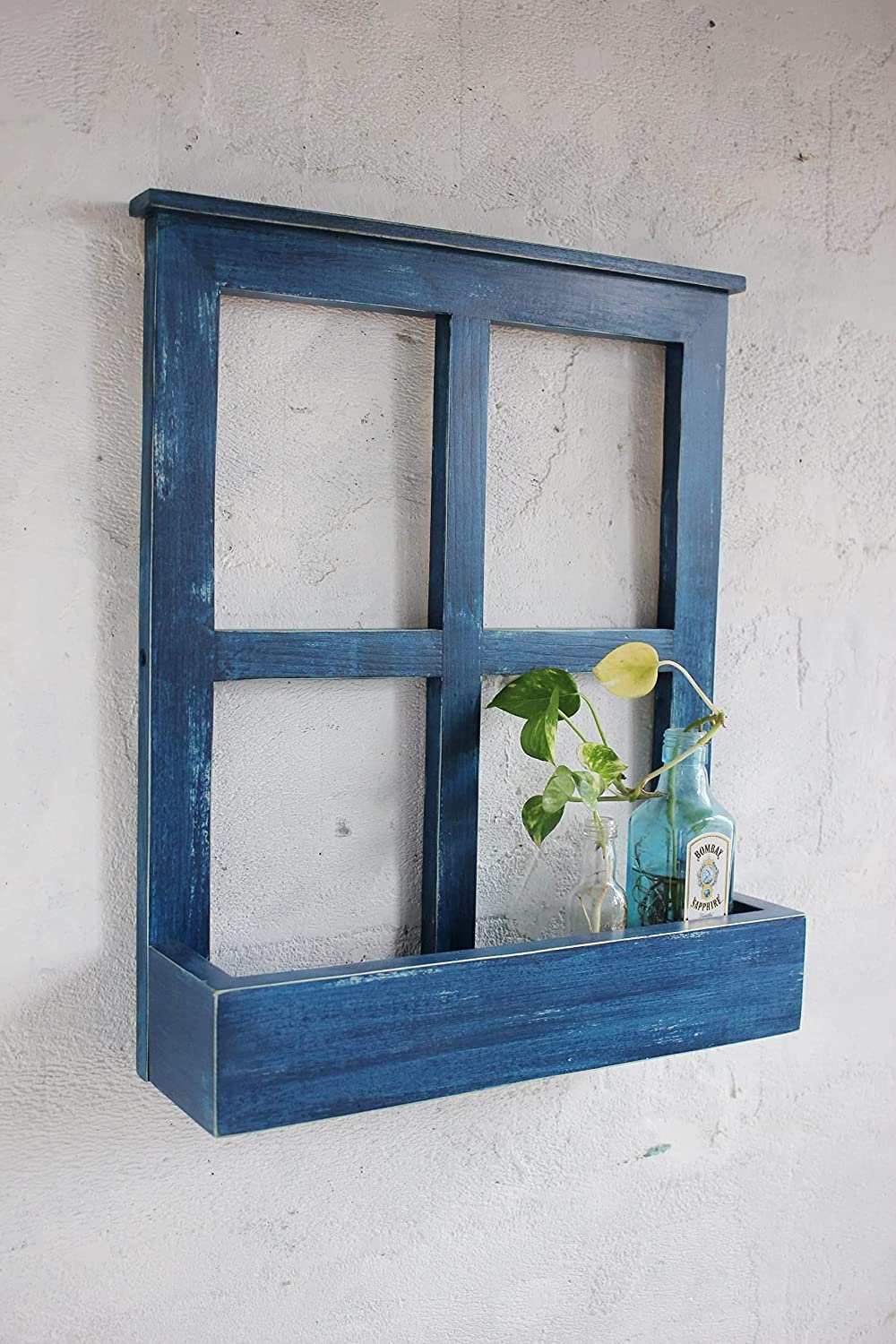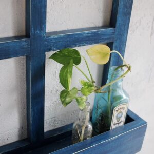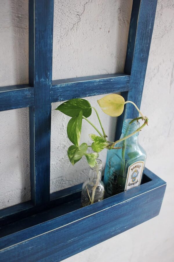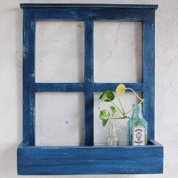 Enhance your home décor with this beautifully handcrafted wooden window frame wall shelf. Featuring a rustic blue finish, this decorative piece combines vintage aesthetics with functional storage, perfect for displaying small plants, vases, or decorative accents.