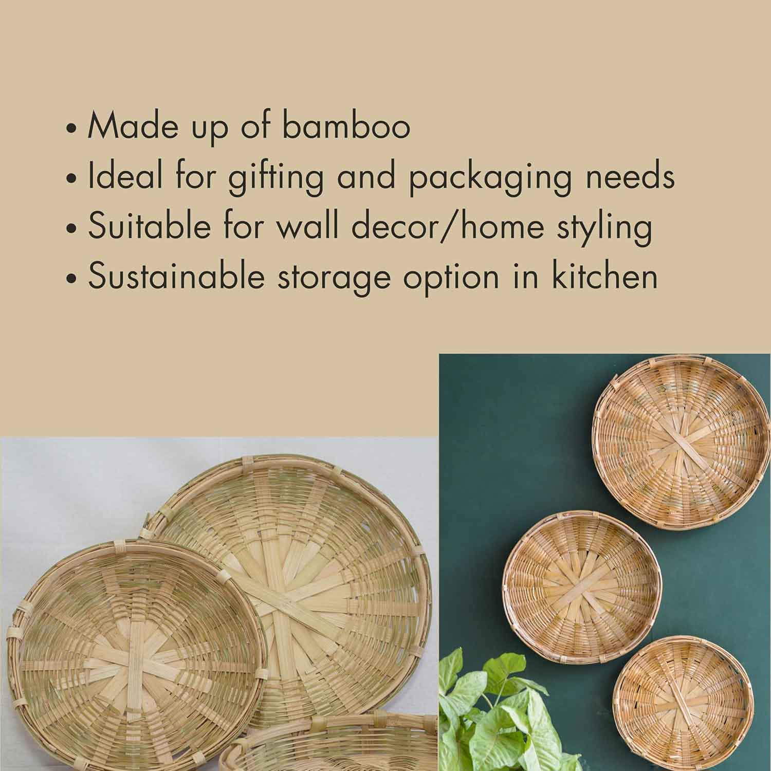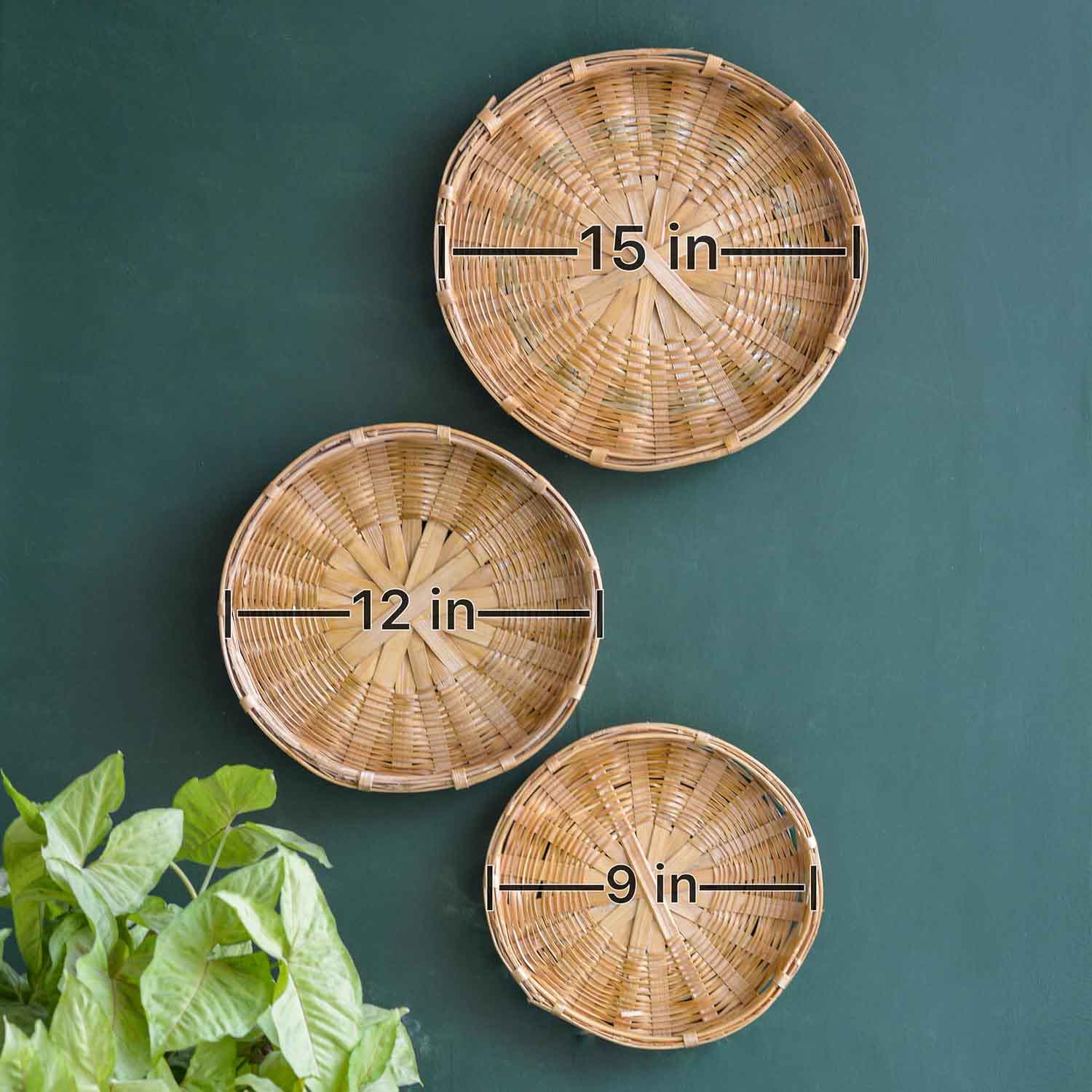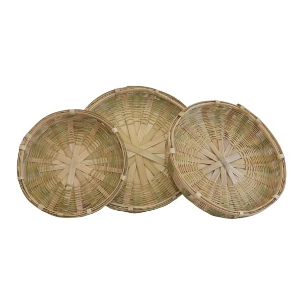Enhance your home decor with this beautiful set of three handwoven bamboo baskets. Designed for wall d?cor, storage, or serving, these eco-friendly baskets add a rustic and artisanal touch to any space.