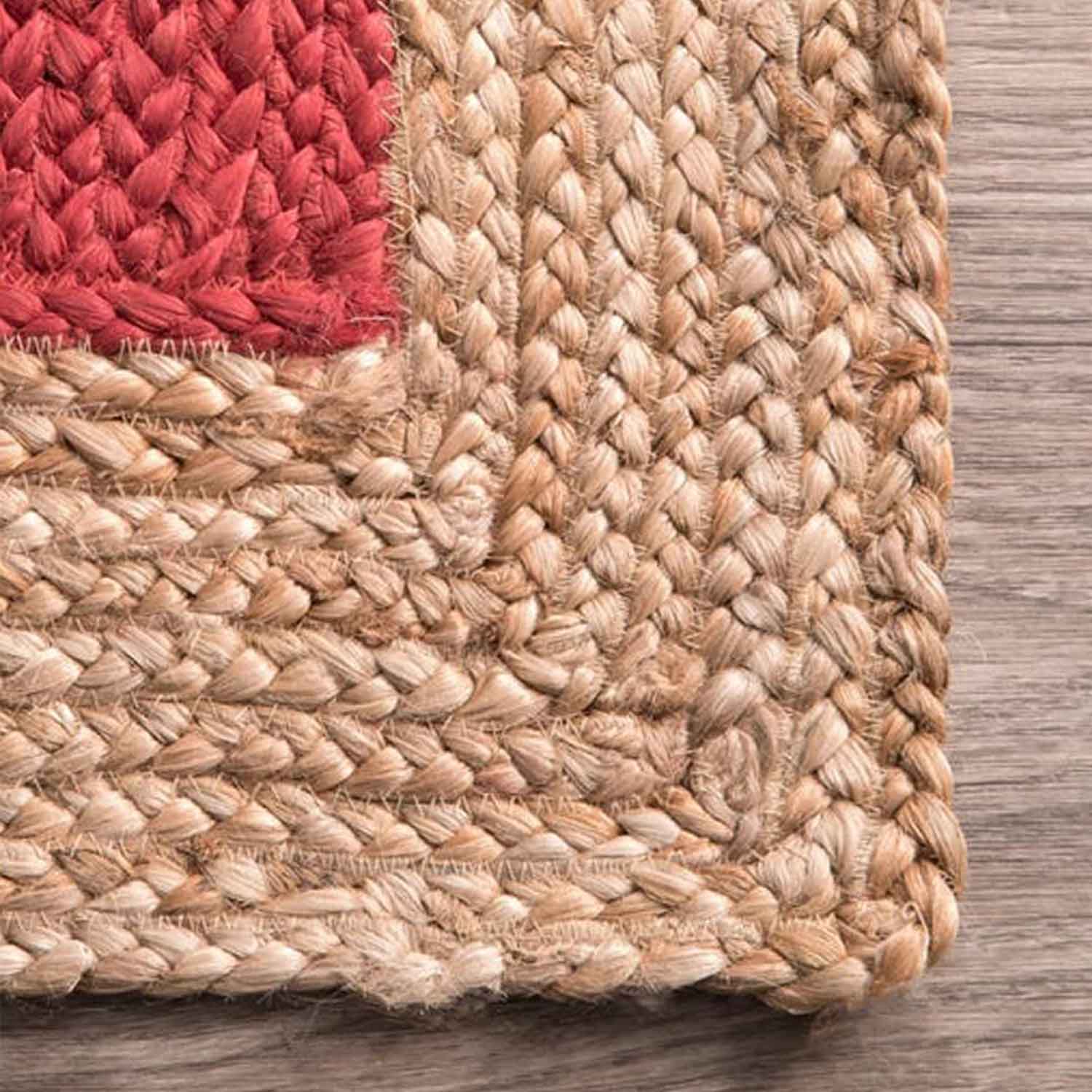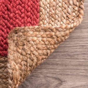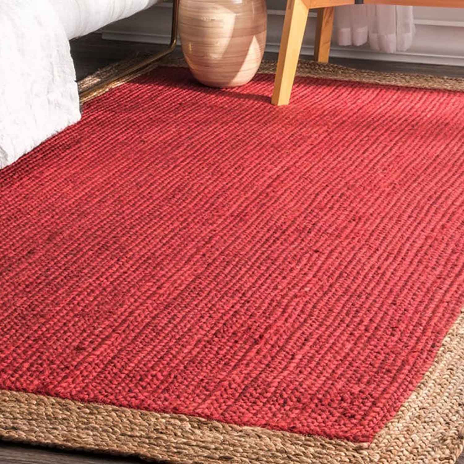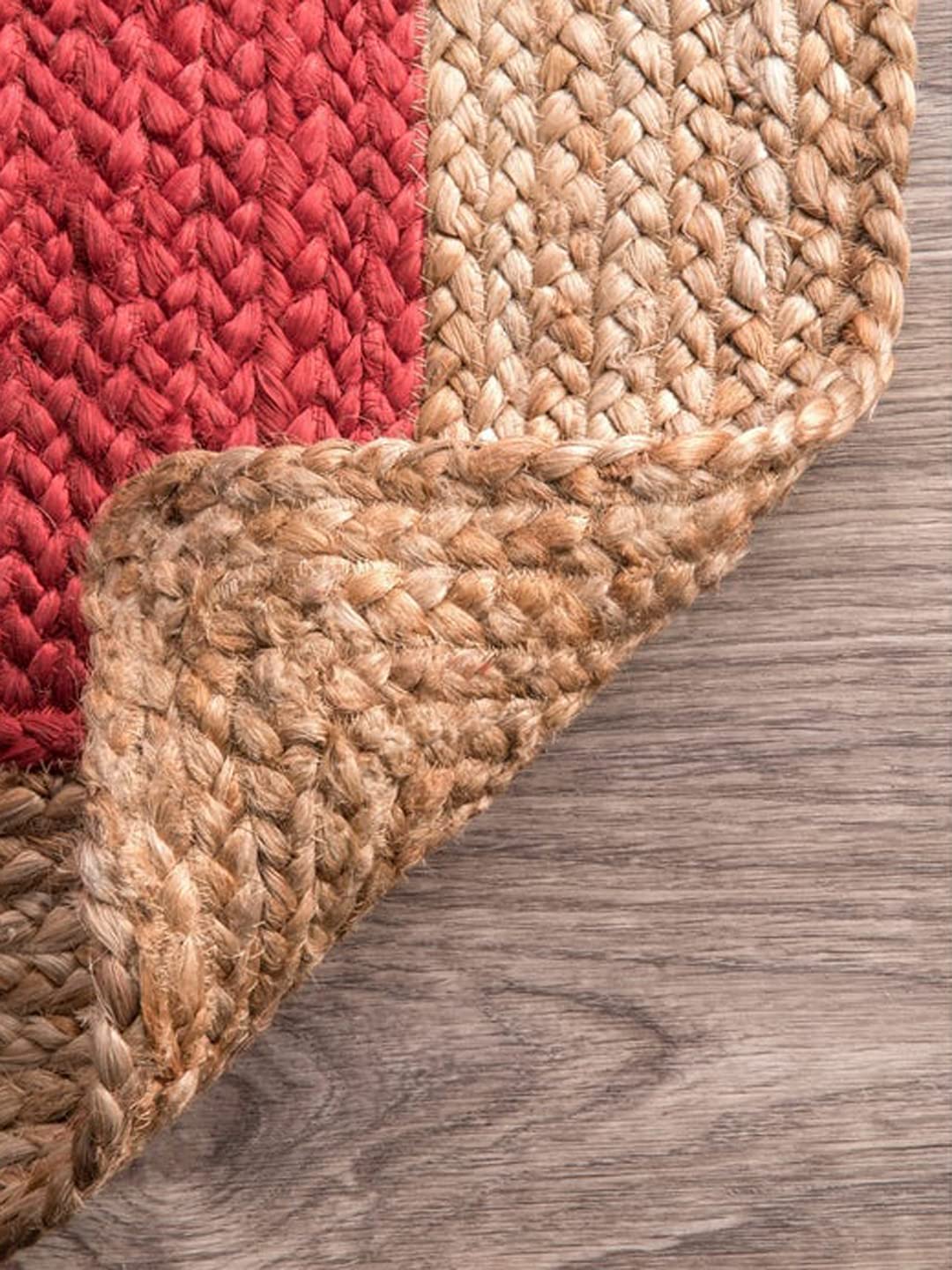 Design: Handwoven with a bold red cotton center and a natural jute border