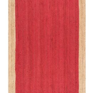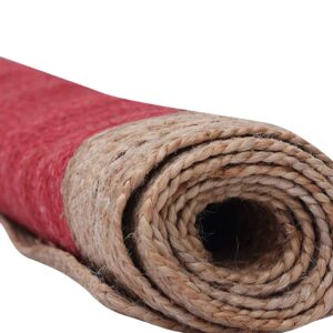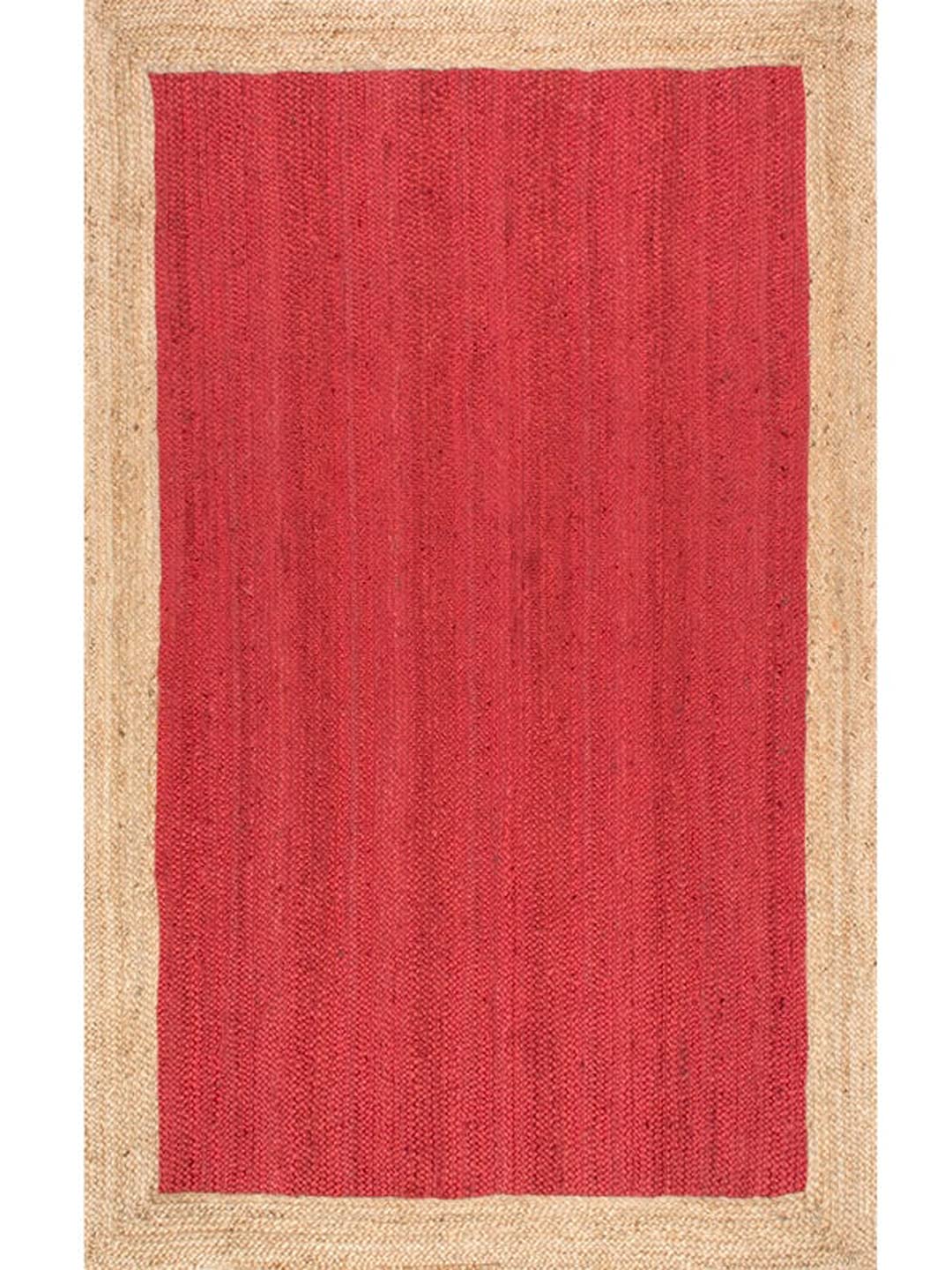 A beautifully handwoven red jute and cotton rug featuring a bold, textured design with a natural jute border. Ideal for adding warmth and style to any space.
