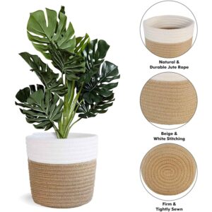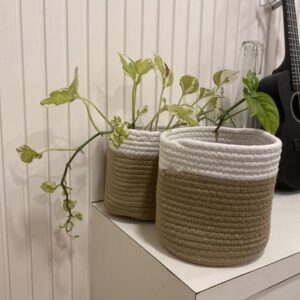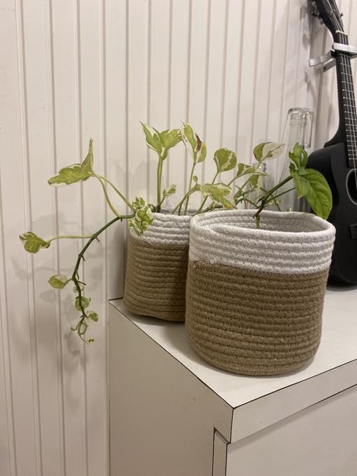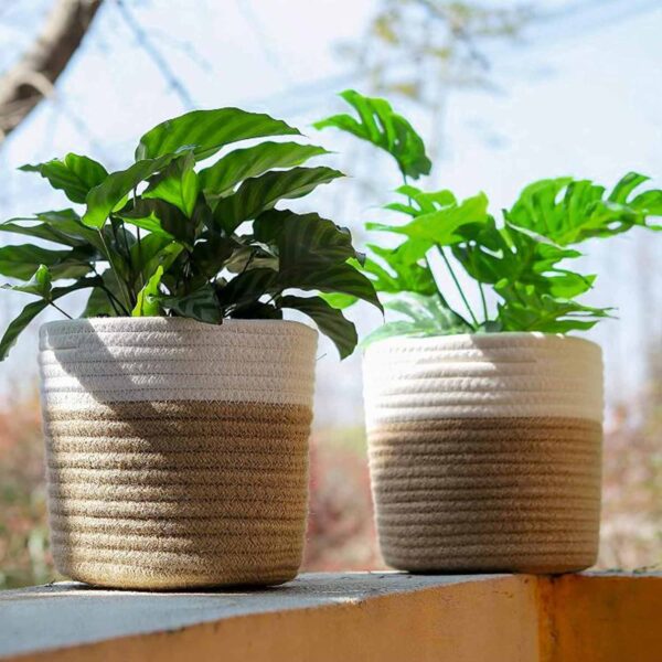 Enhance your indoor décor with this stylish jute rope plant basket. Made from durable, natural fibers, it features a two-tone beige and white design that complements any space. Ideal for holding potted plants or storage needs.