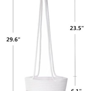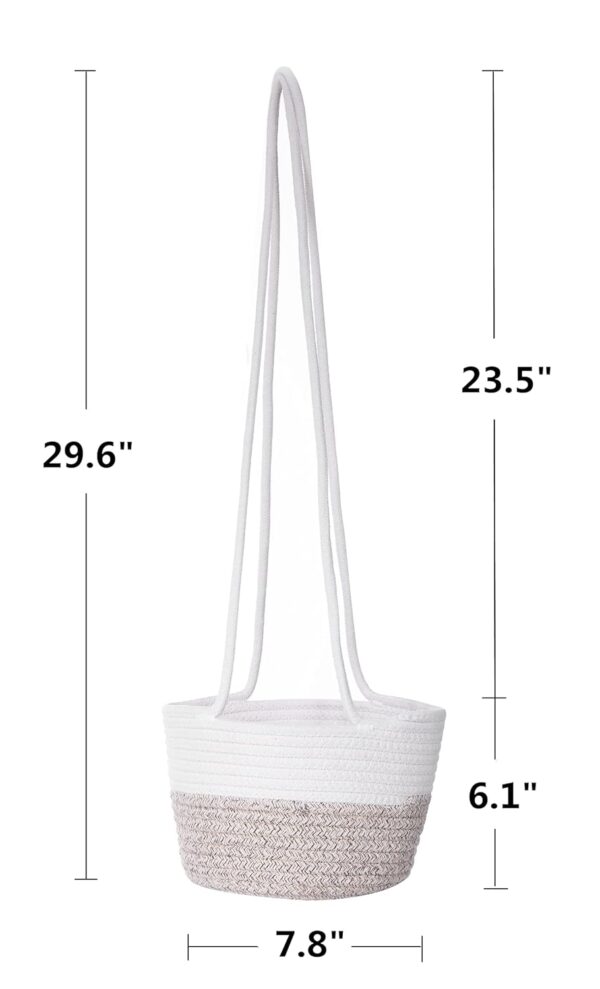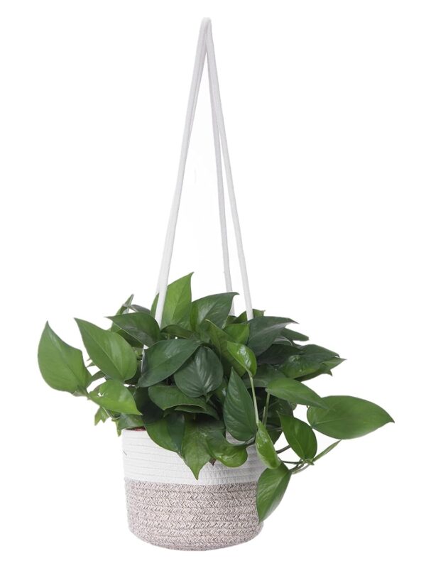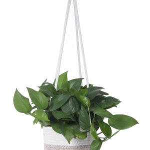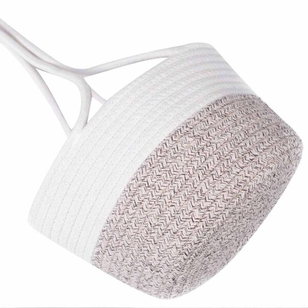 Upgrade your home décor with this elegant cotton rope hanging basket, designed to provide functionality and style. Crafted from high-quality woven cotton with a sturdy structure, this basket is perfect for holding plants, organizing household items, or enhancing any space with a natural aesthetic. The neutral white and beige color scheme complements various interiors, while the long, durable handles allow for easy hanging. Whether used in the living room, kitchen, or balcony, this multi-purpose hanging basket is both a decorative and practical addition to your home.