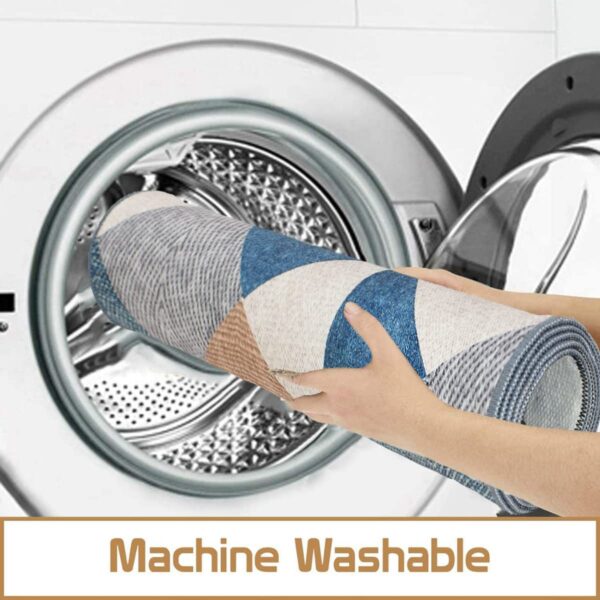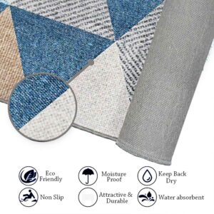 Enhance your home decor with this elegant Modern Geometric Area Rug. Designed with a contemporary triangular pattern in calming shades of blue, beige, and white, this rug brings a modern and sophisticated touch to any space. Crafted with eco-friendly, water-absorbent materials, it is both stylish and functional. The rug features a non-slip backing for added safety, ensuring stability on various floor types. Its soft yet durable texture provides comfort underfoot while resisting everyday wear and tear. Whether placed in a living room, bedroom, or office, this versatile rug seamlessly complements modern, minimalist, and Scandinavian interior styles.