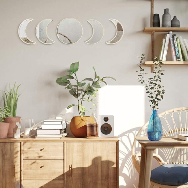 A stylish moon phase mirror set made from acrylic, designed for decorative purposes. Perfect for adding a celestial touch to bedrooms, living rooms, or meditation spaces.