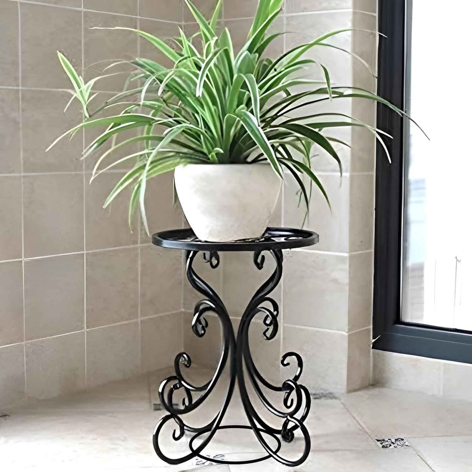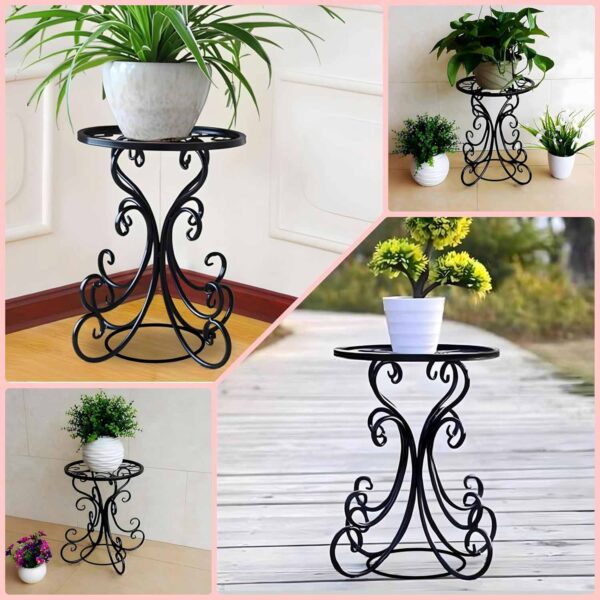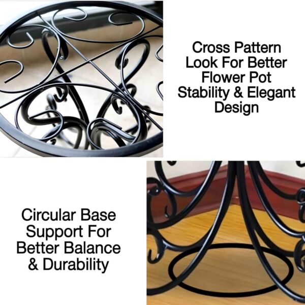 Featuring a cross-patterned top, it ensures stability for your flower pots, while the circular base offers better balance and durability. The intricate scrollwork design adds a classic, decorative touch, making it an ideal addition to your living room, balcony, patio, or garden.