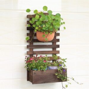 Enhance your home or garden décor with this beautifully crafted rustic wooden wall planter with a trellis. Made from high-quality wood with a rich brown finish, this planter is designed to provide both functionality and style. The trellis adds an elegant vertical element, making it perfect for climbing plants, vines, or decorative hanging accents. The deep planter box allows for healthy root growth and is ideal for flowers, succulents, or herbs. Whether mounted on a patio wall, balcony, or indoor space, this piece brings a warm, nature-inspired aesthetic to any setting.