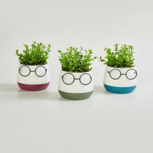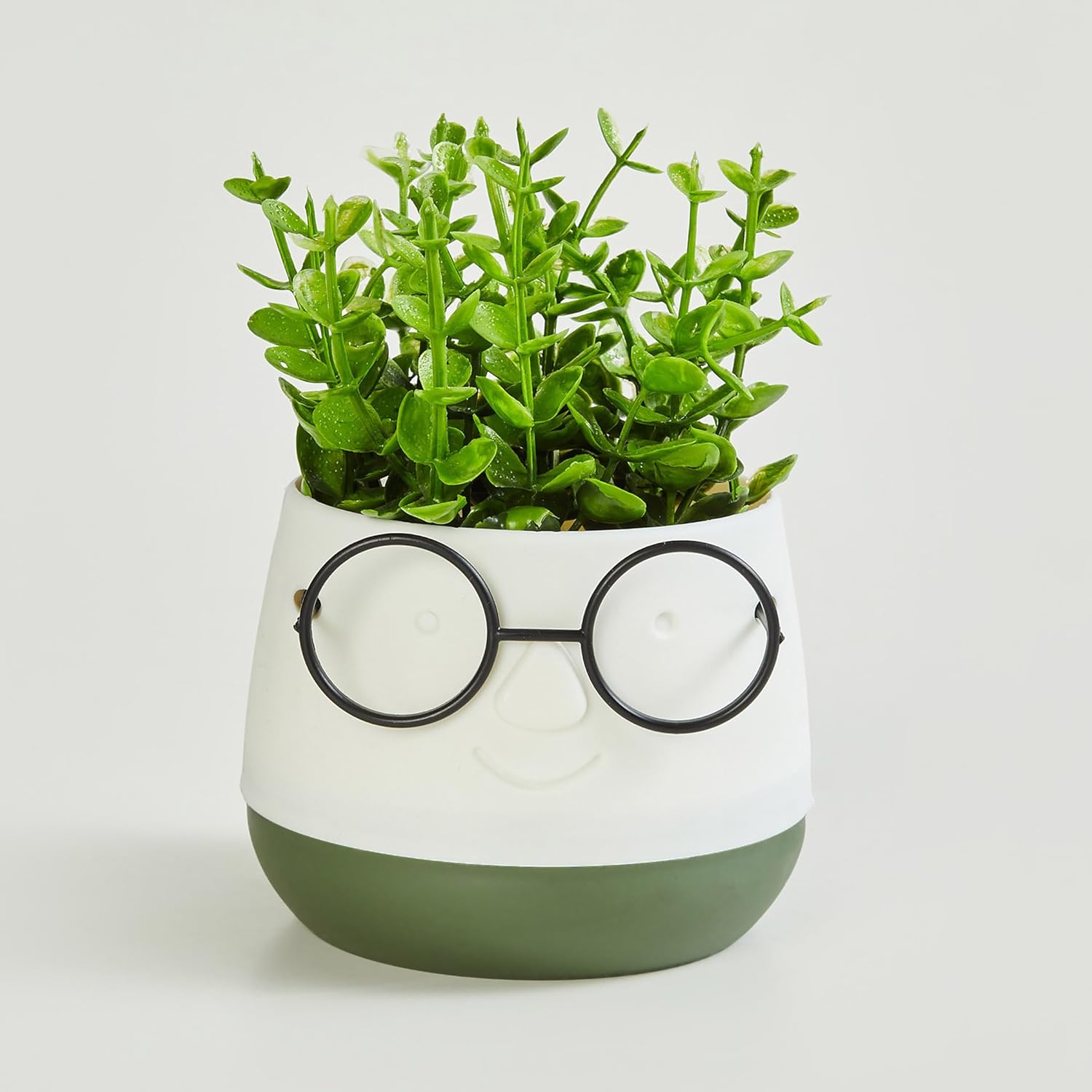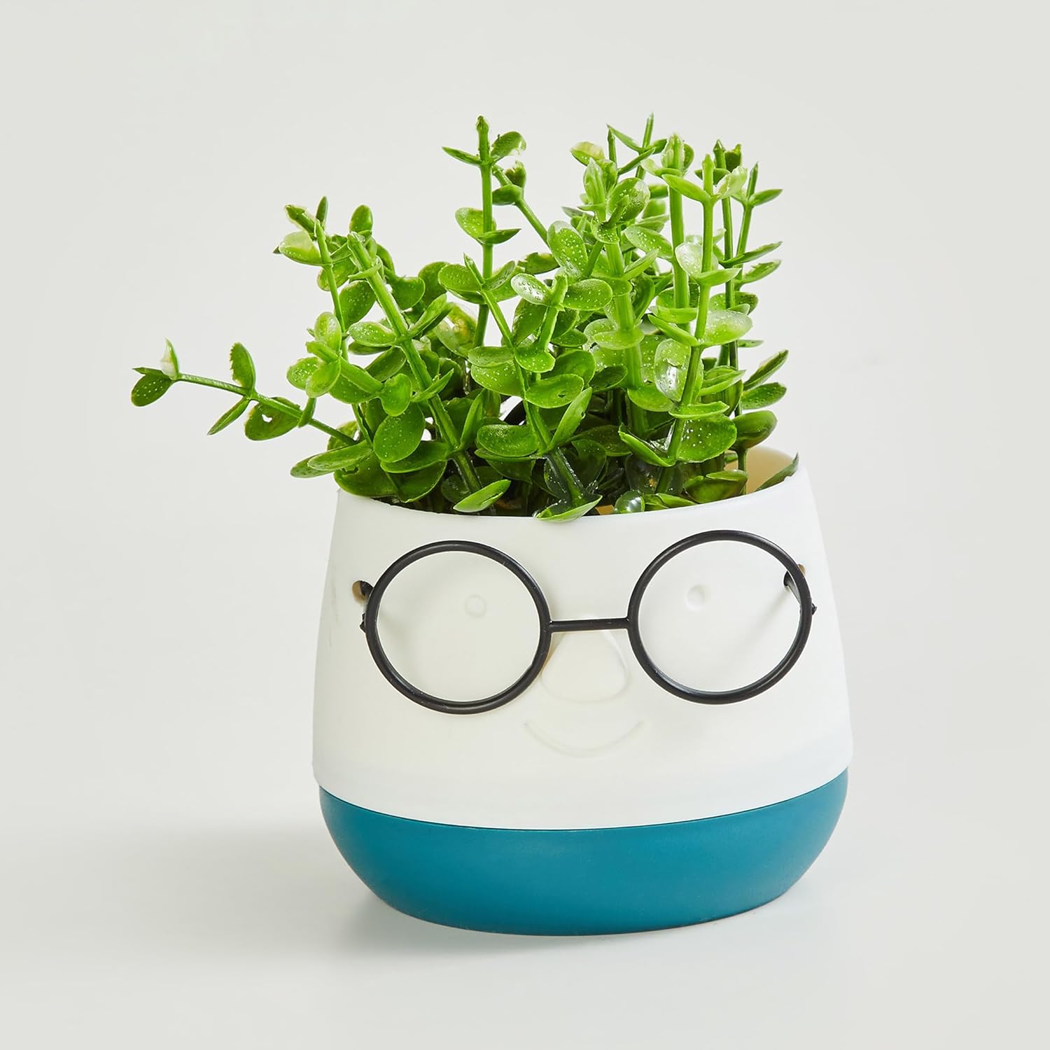 Adorable mini face planters with round glasses, perfect for adding charm to your space! Available in multiple colors, these cute pots bring personality to your plants