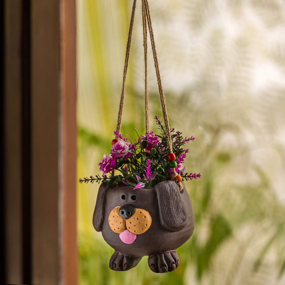 Bring a playful touch to your garden or indoor décor with this Dog-Shaped Hanging Planter. Crafted from high-quality ceramic, this adorable planter features a cute dog face with detailed ears and paws. The sturdy jute rope is accented with colorful beads, making it a delightful addition to any space. Perfect for holding small plants, succulents, or decorative flowers, this planter is a must-have for pet lovers and plant enthusiasts alike. Its durable build ensures longevity, while the compact design makes it ideal for balconies, patios, or home interiors.