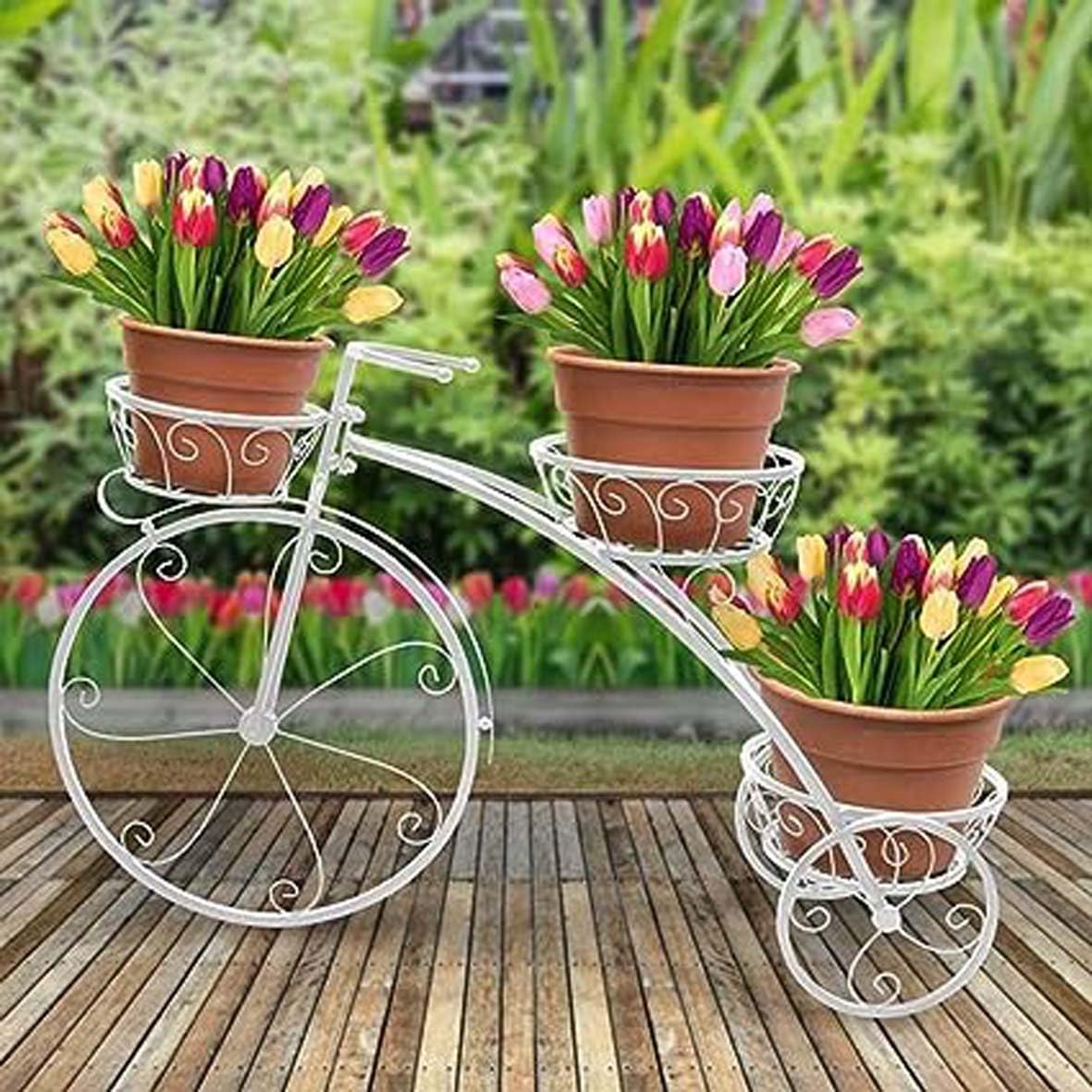 Whether used to showcase vibrant flowers, lush greenery, or decorative pieces, this bicycle-shaped plant holder is a versatile and eye-catching addition. The sturdy structure ensures stability, while the weather-resistant finish makes it ideal for both indoor and outdoor use.