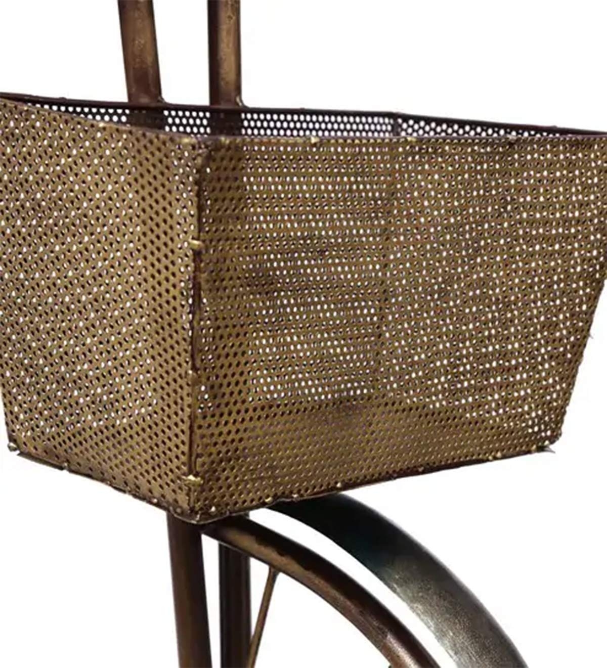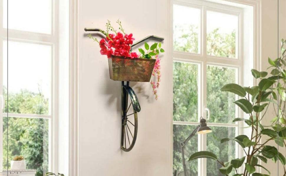 The half-cycle design mounts easily to your wall, making it a perfect decorative item for entryways, balconies, living rooms, or cafes. Fill the basket with faux flowers, small potted plants, rolled towels, or even your favorite books to personalize your space. Its versatile use and antique finish make it a standout statement piece that’s both artistic and functional.