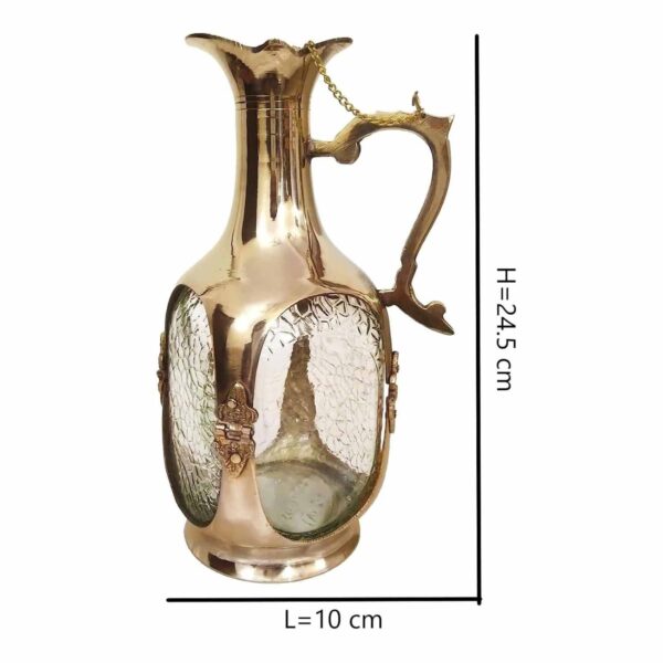 Perfect for display, serving water or beverages, or as a unique gift, this brass and glass pitcher seamlessly blends vintage charm with practicality. Whether placed in a living room, dining area, or office, it enhances the surroundings with its artistic craftsmanship.