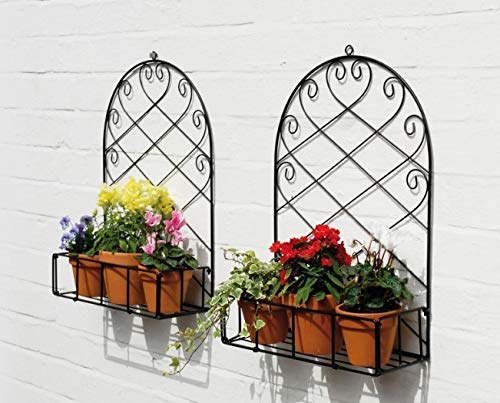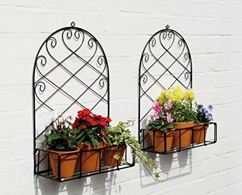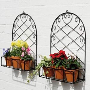 Add charm and greenery to your walls with this set of wall-mounted metal plant holders. Featuring elegant trellis-back designs, these holders are perfect for showcasing small potted plants indoors or outdoors.