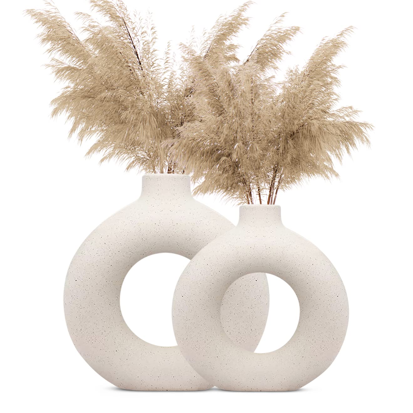 Enhance your home with these exquisite modern ceramic vases, designed to bring elegance and sophistication to any interior. The unique hollow circle design creates a stylish, eye-catching focal point, making them ideal for contemporary, minimalist, or bohemian decor. Crafted from high-quality ceramic, these vases are sturdy, durable, and hand-finished with a speckled matte texture for a natural and refined look.